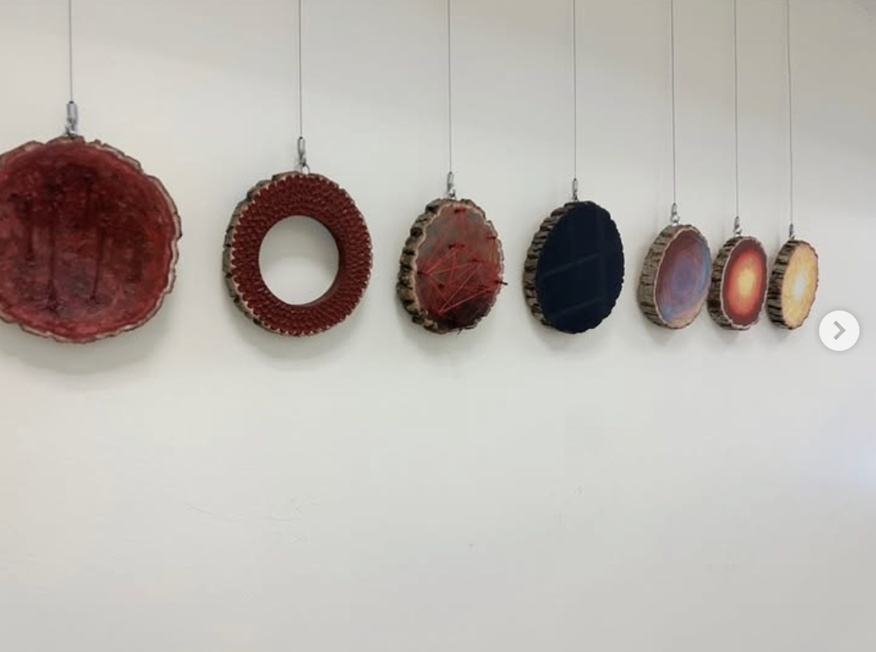 Using both 2D and 3D elements, I developed a art piece that spoke on the effects of being conscious of death on humans. These art pieces were done on woodblock rounds, which I utilized by cutting and carving.